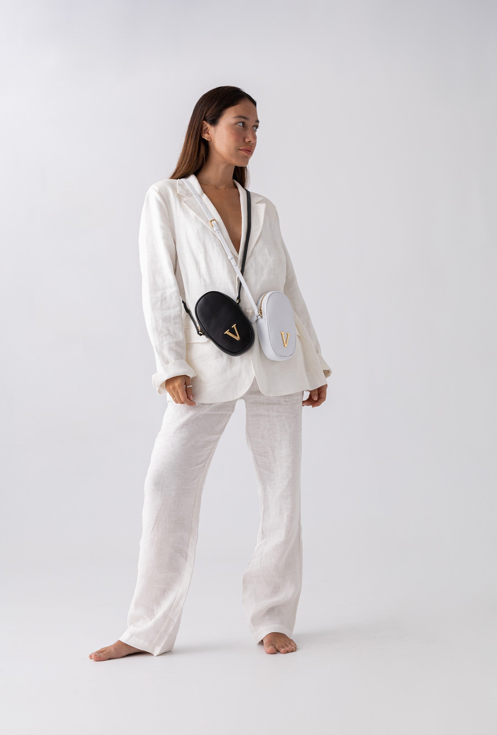 The Egg Bag is a bag with a new and modern design that is characterized by its mini, versatile and sophisticated shape. The Egg Bag has been made with 100% cowhide With a soft texture in an artisanal way, its gold metal details have been polished by hand and its interior lining is 100% cotton with an internal pocket for more comfort. It has an adjustable shoulder strap with various measures giving rise to the multiposition of the bag, it can be worn both crossbody and over the shoulder. The brand's characteristic logo is fire-engraved on the back. The bag is available in four different colors, black, pink, orange and white.