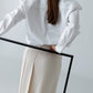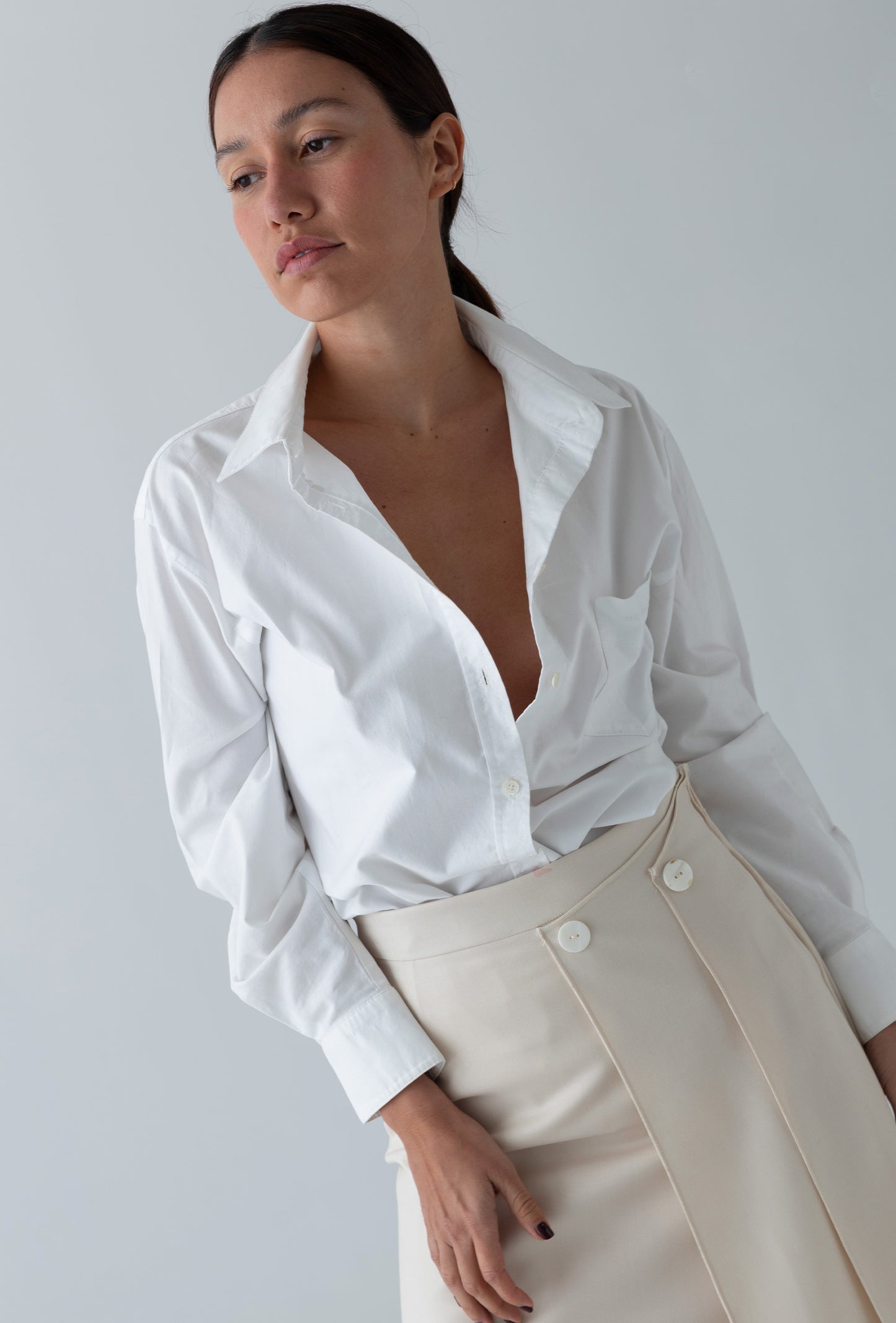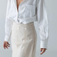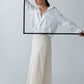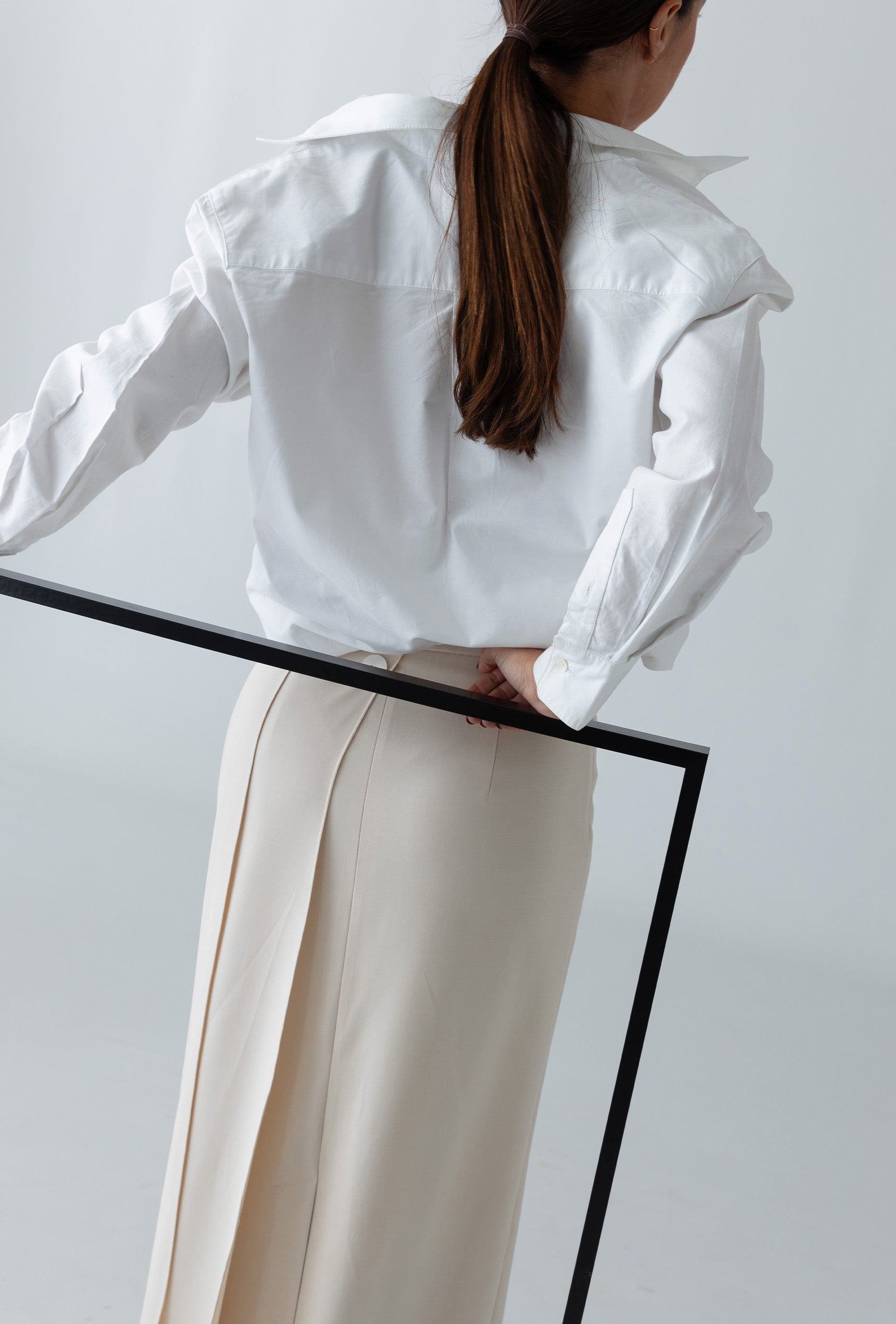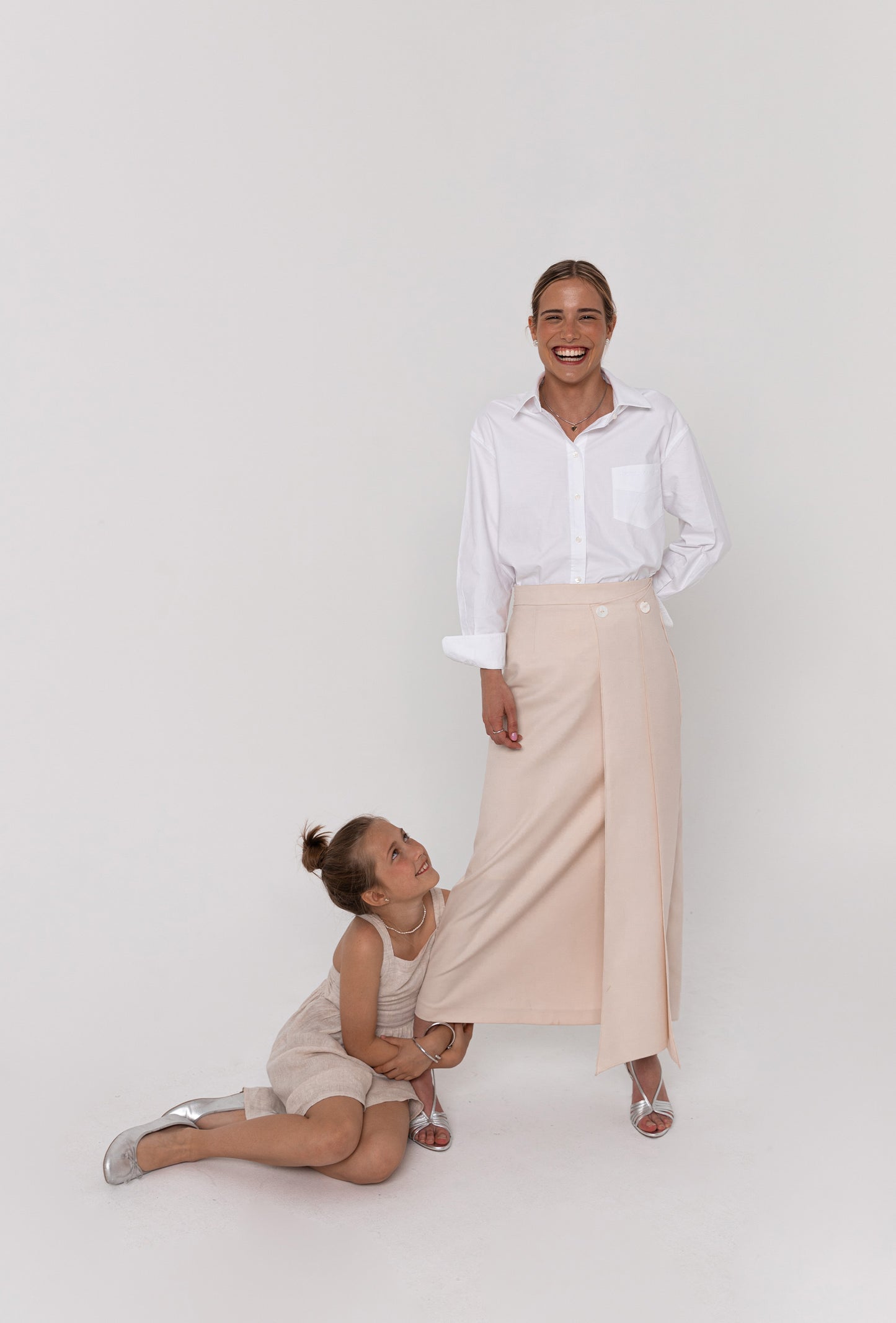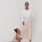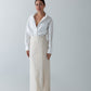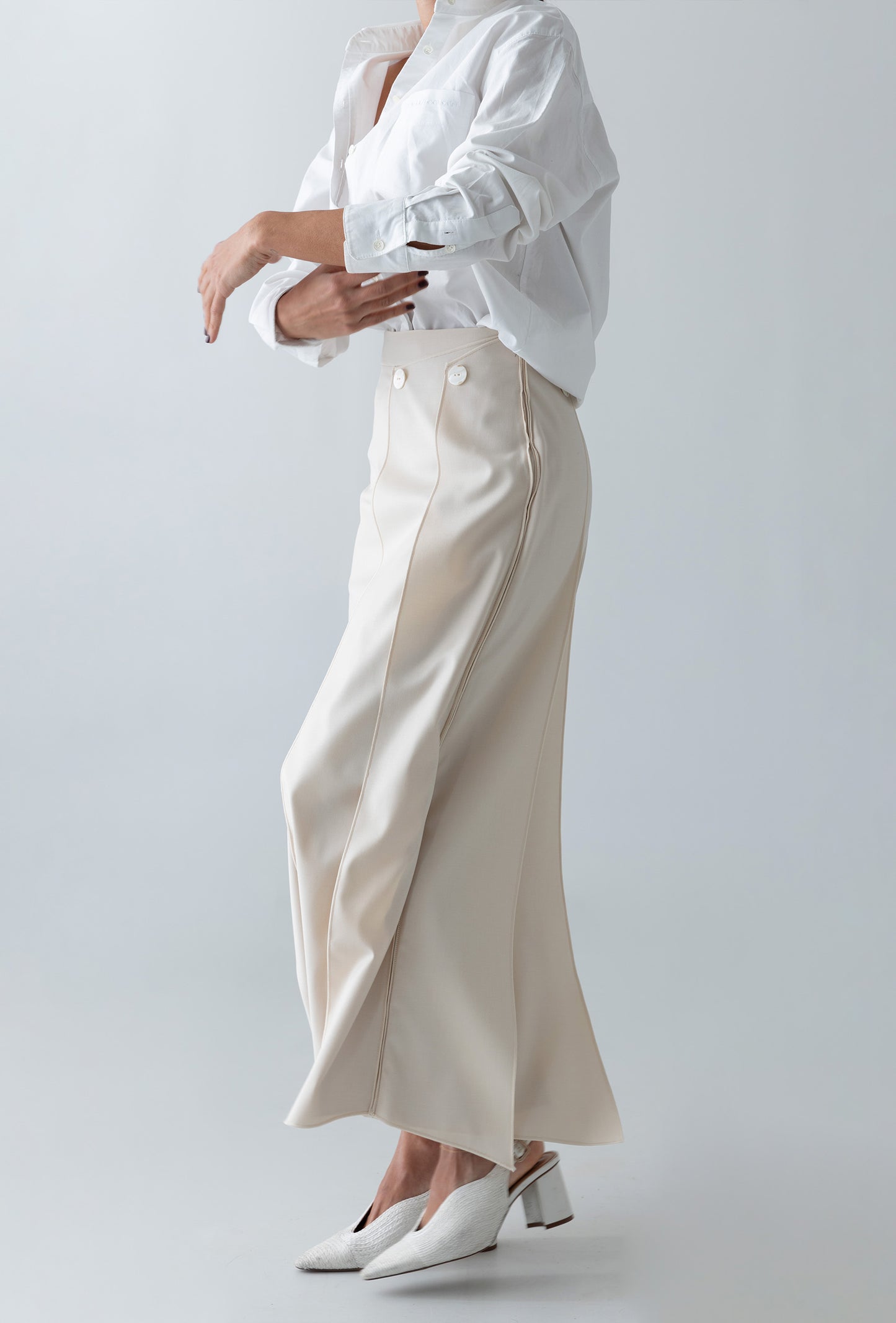 Falda con corte midi en color crema. Esta falda representa una pieza única con un diseño atemporal y elegante.