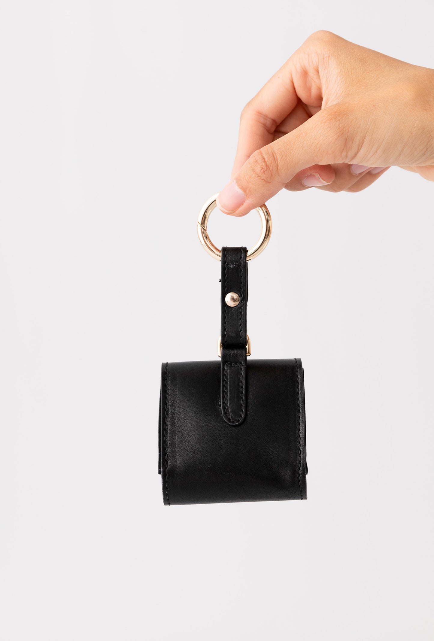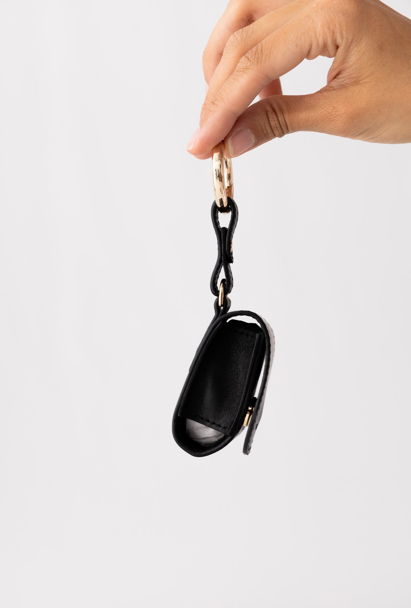 La funda AirPods Case cuenta con una anilla en dorado, la cual le añade un toque de sofisticación y brinda la posibilidad de engancharlo fácilmente a cualquier bolso, mochila o llavero, para que puedas llevar tus AirPods siempre contigo de una manera segura y cómoda.