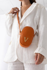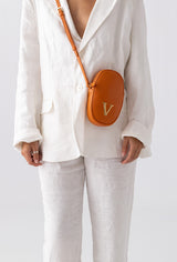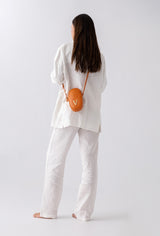 The Egg Bag has been made with 100% cowhide With a soft texture in an artisanal way, its gold metal details have been polished by hand and its interior lining is 100% cotton with an internal pocket for more comfort. It has an adjustable shoulder strap with various measures giving rise to the multiposition of the bag, it can be worn both crossbody and over the shoulder. The brand's characteristic logo is fire-engraved on the back. The bag is available in four different colors, pink, white, orange and black.