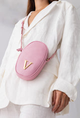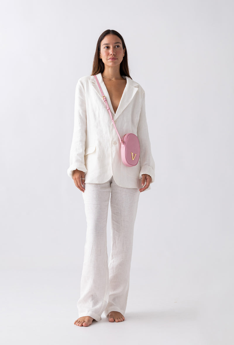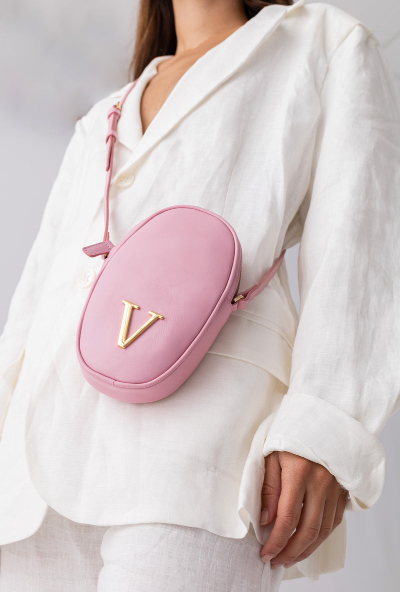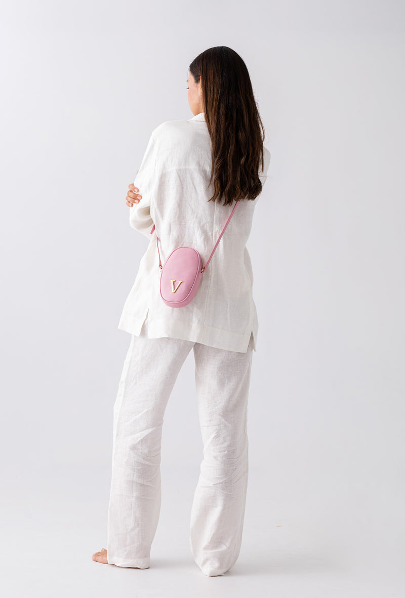 The Egg Bag has been made with 100% cowhide With a soft texture in an artisanal way, its gold metal details have been polished by hand and its interior lining is 100% cotton with an internal pocket for more comfort. It has an adjustable shoulder strap with various measures giving rise to the multiposition of the bag, it can be worn both crossbody and over the shoulder. The brand's characteristic logo is fire-engraved on the back. The bag is available in four different colors, white, orange, pink and black.