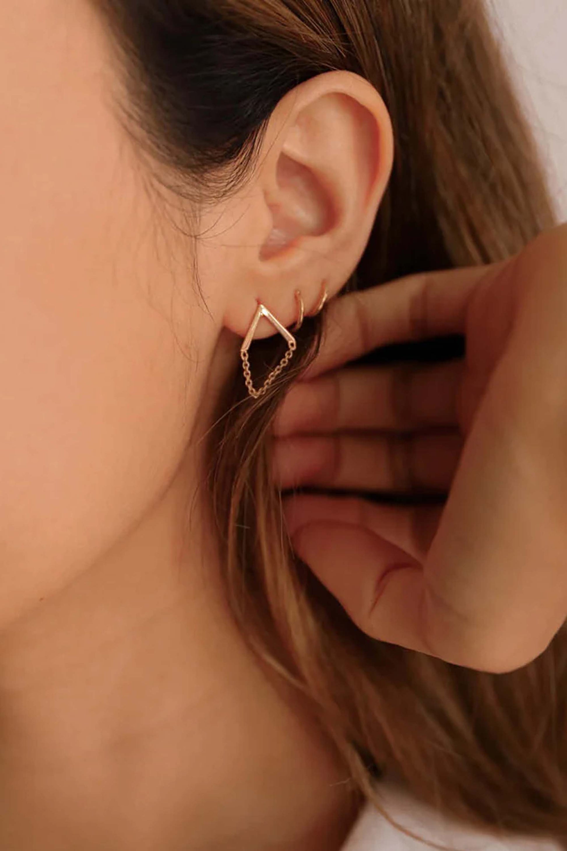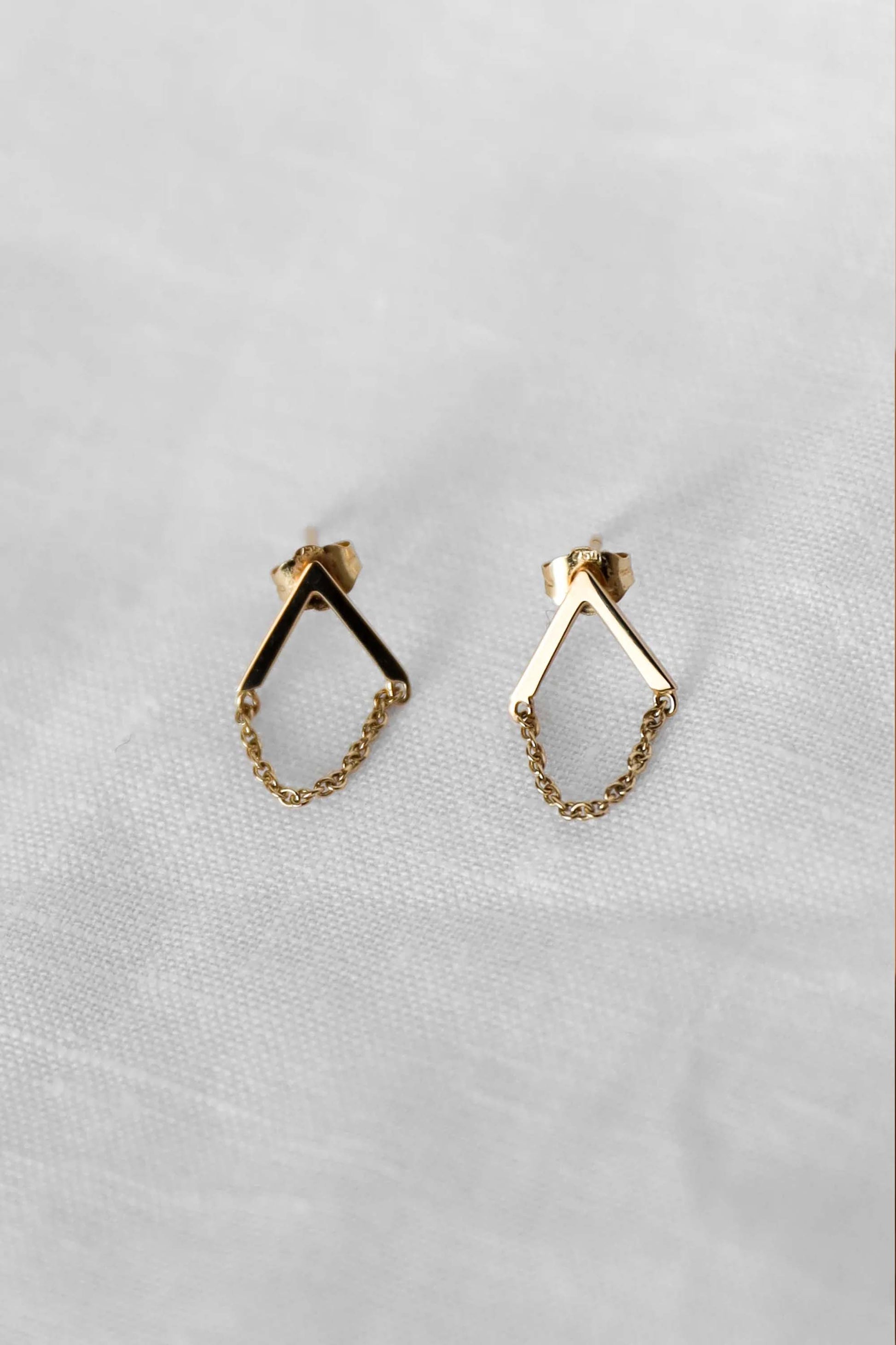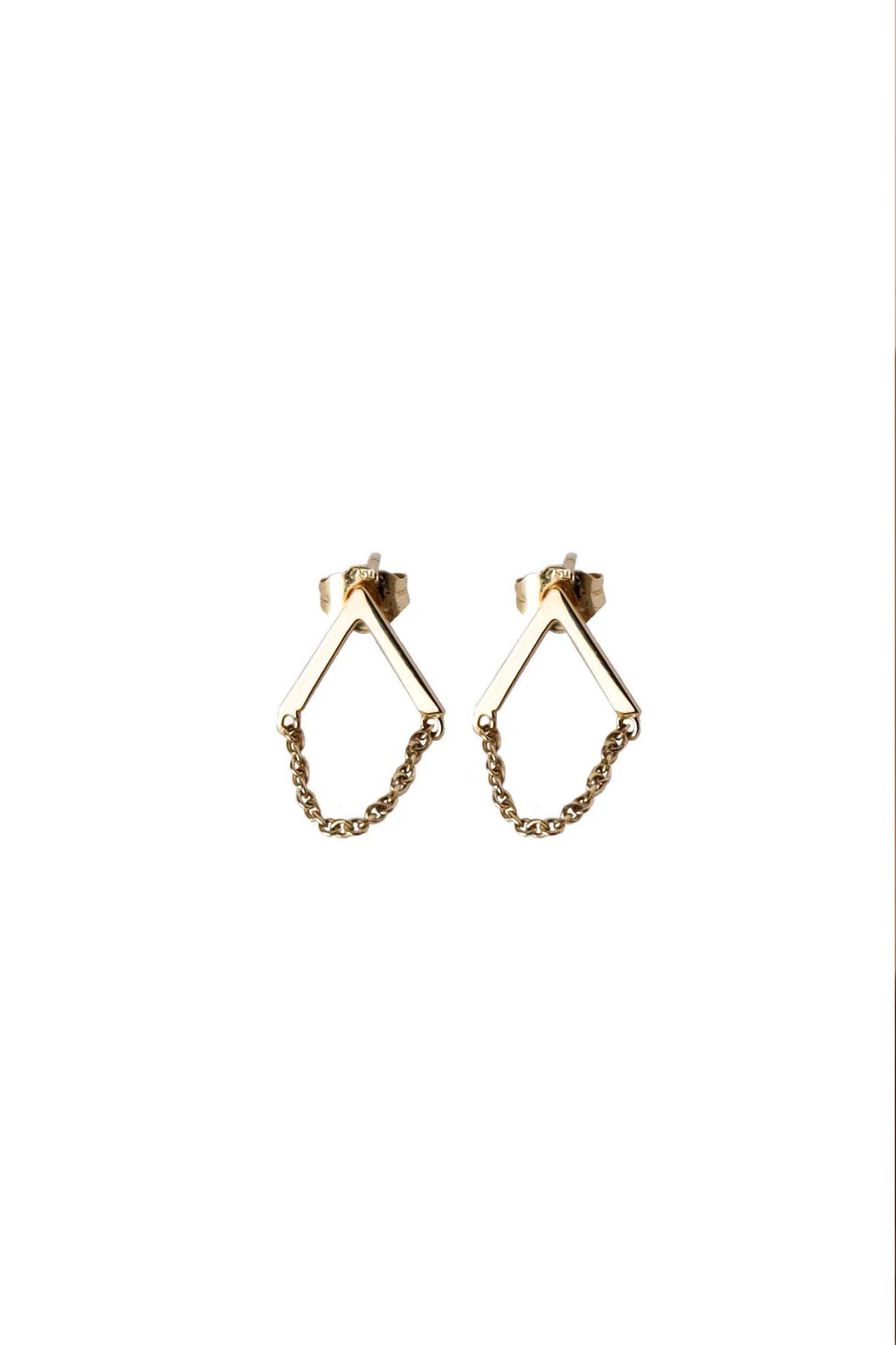 Utilisant la caractéristique V de la marque et accompagnées d'une fine chaîne, ces boucles d'oreilles ont été réalisées avec de l'or massif 18 carats et des finitions de haute qualité.