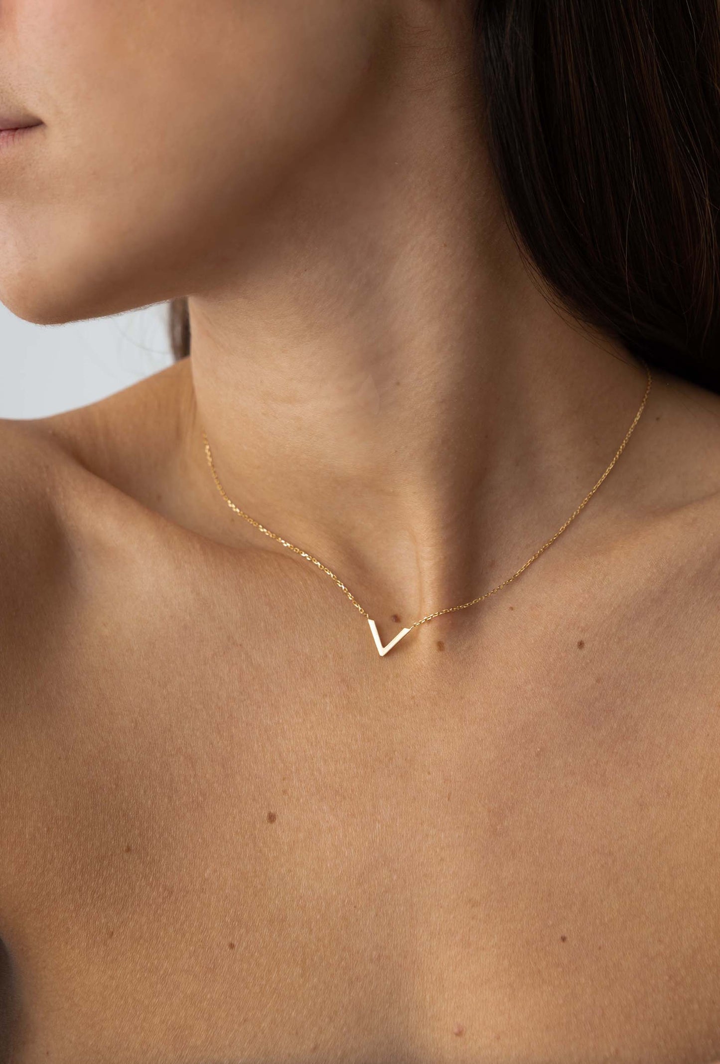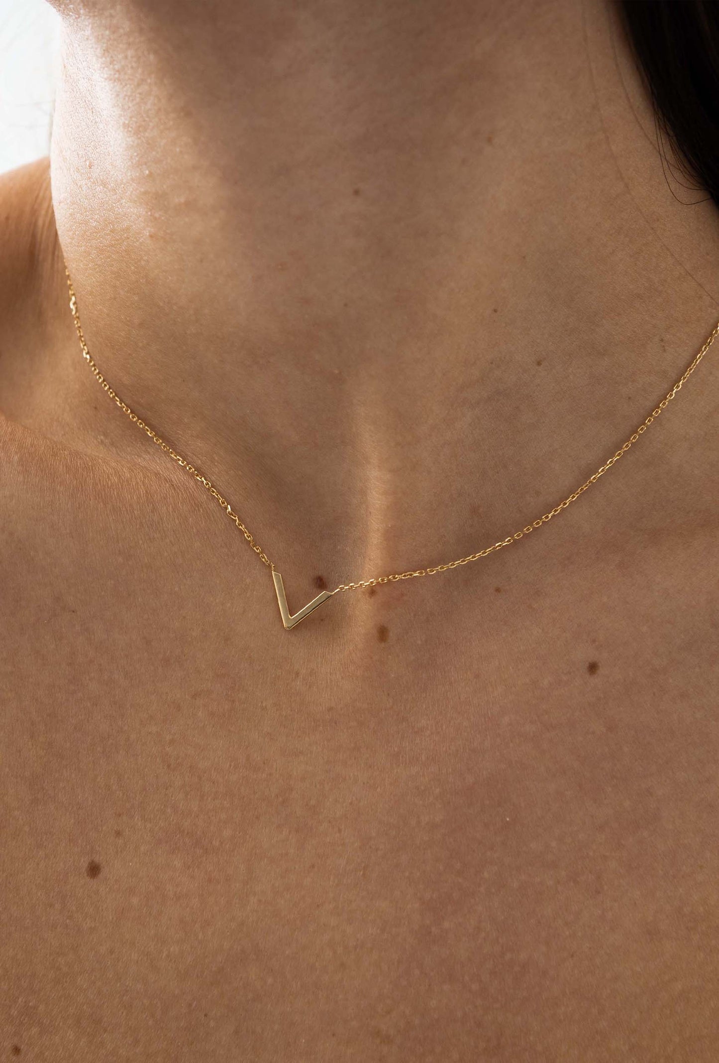 Son design s'inspire du célèbre "V" qui caractérise The Villã Concept. Spécialement conçu pour favoriser la féminité du cou et styliser la clavicule. Simple et élégant à habiller ou à porter au quotidien. Il a une fine chaîne en or 18 kt.