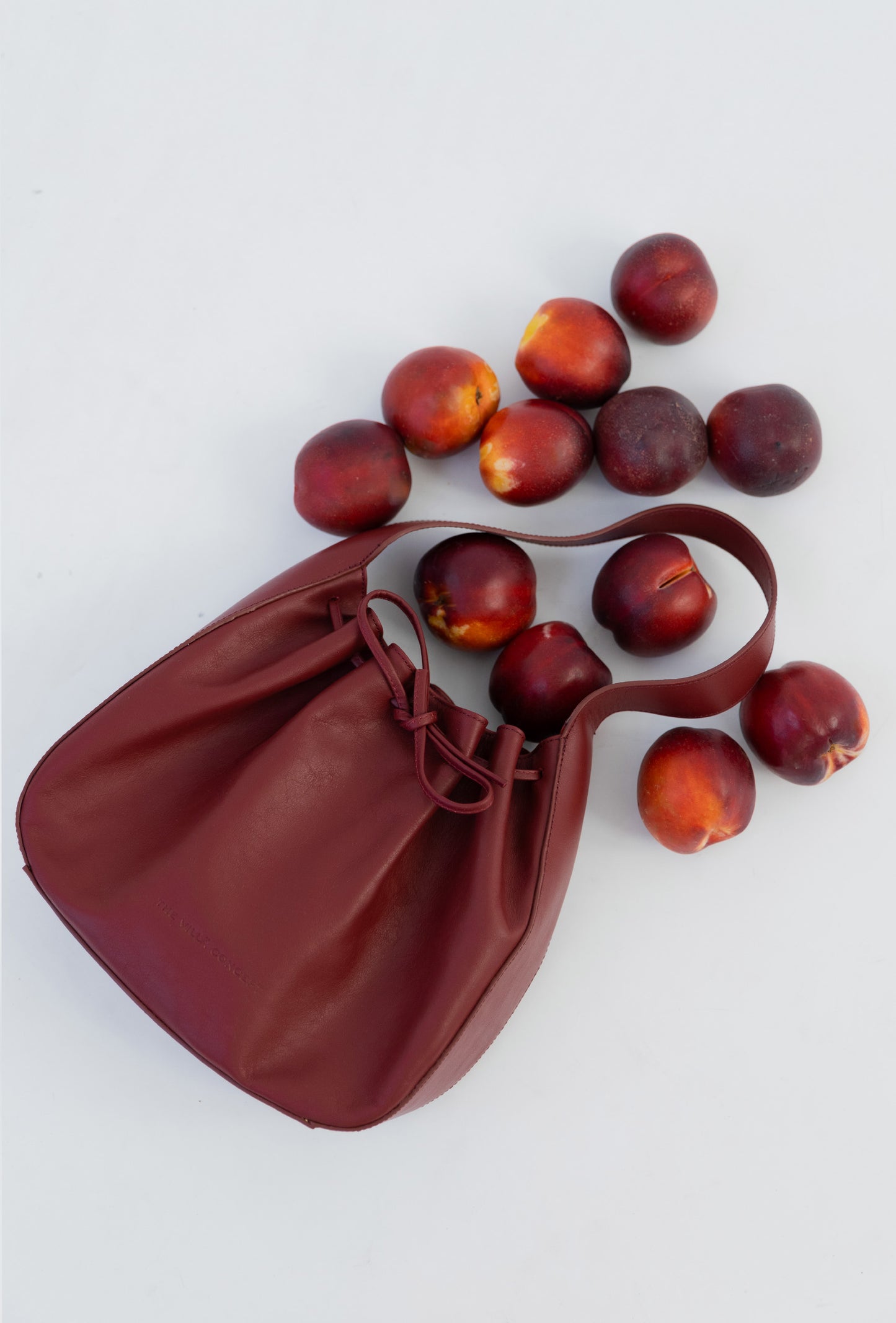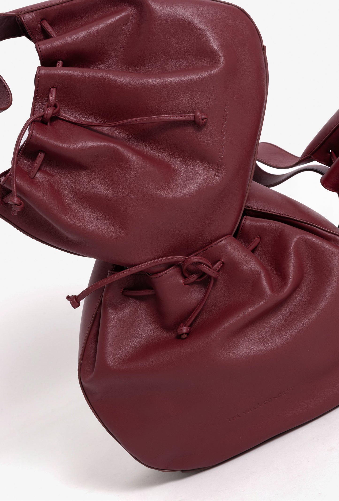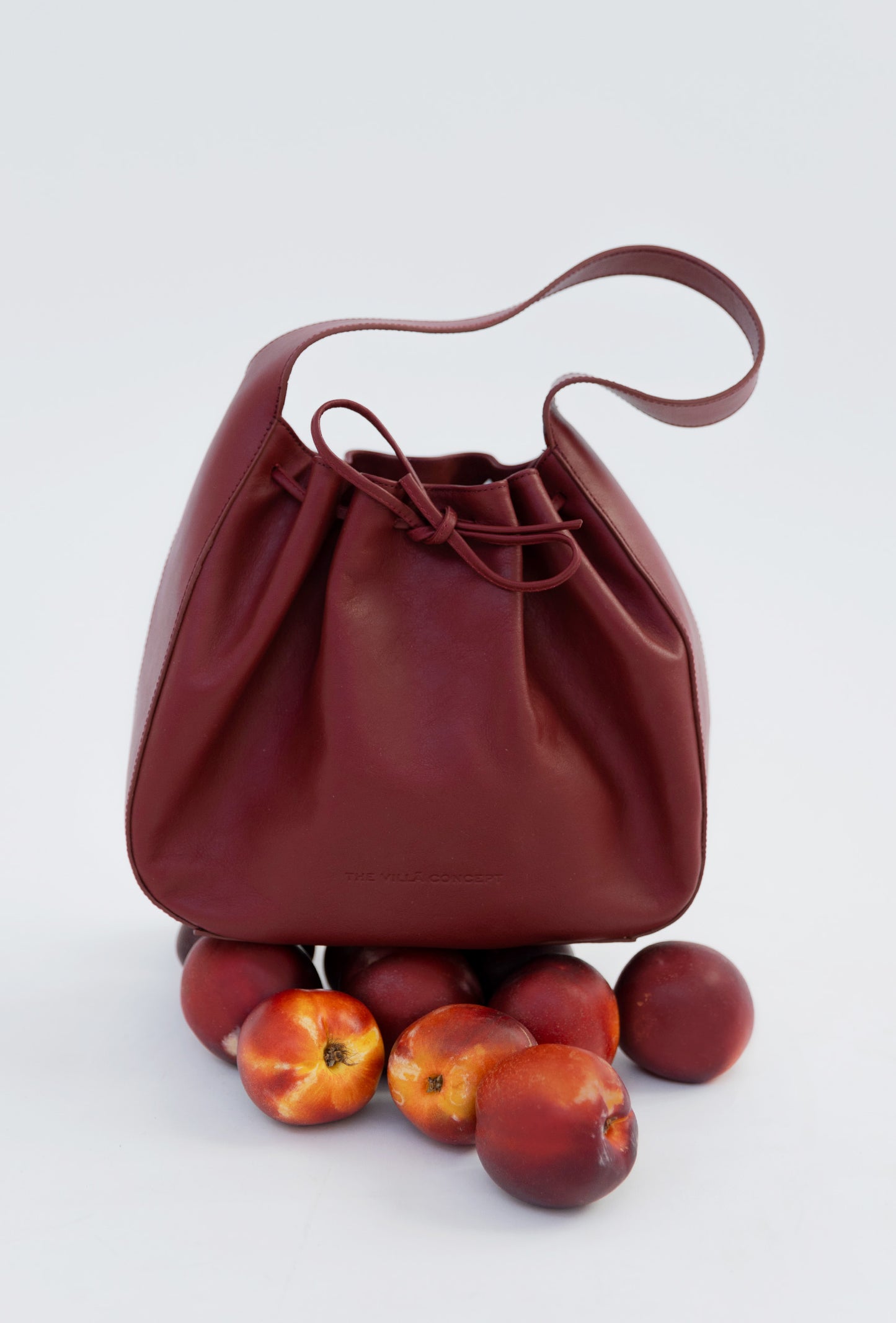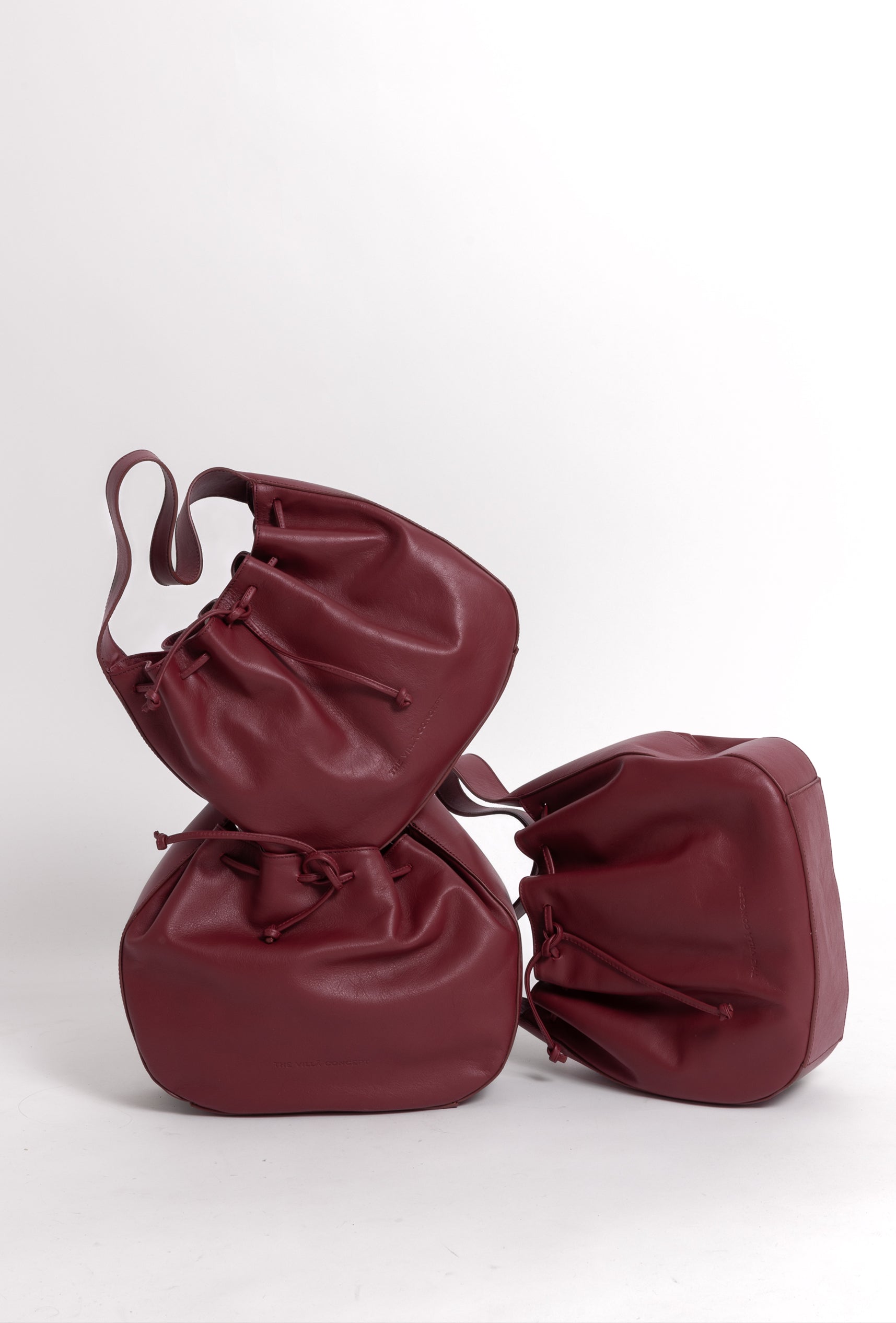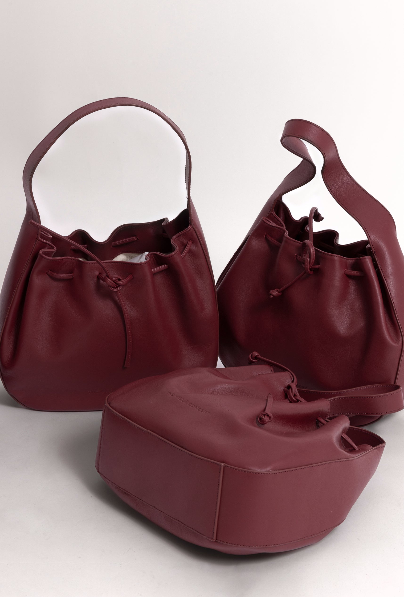El Sac Leather bag: Wine tiene una forma abullonada y se cierra de manera segura con una cuerda regulable. Este bolso es perfecto para llevarlo en cualquier ocasión.