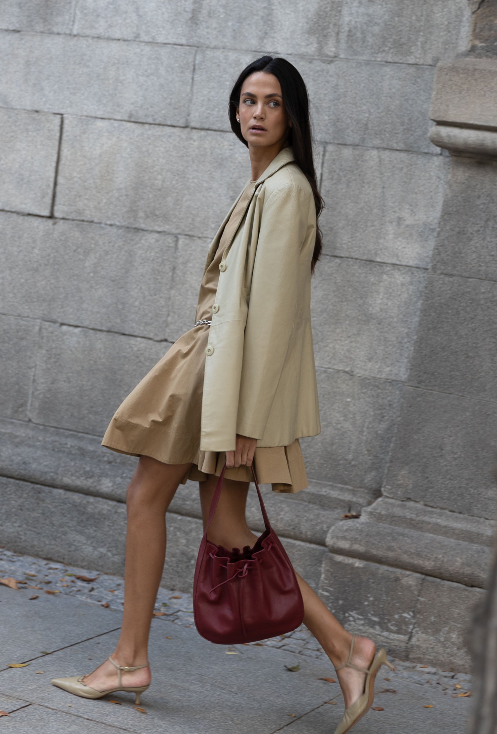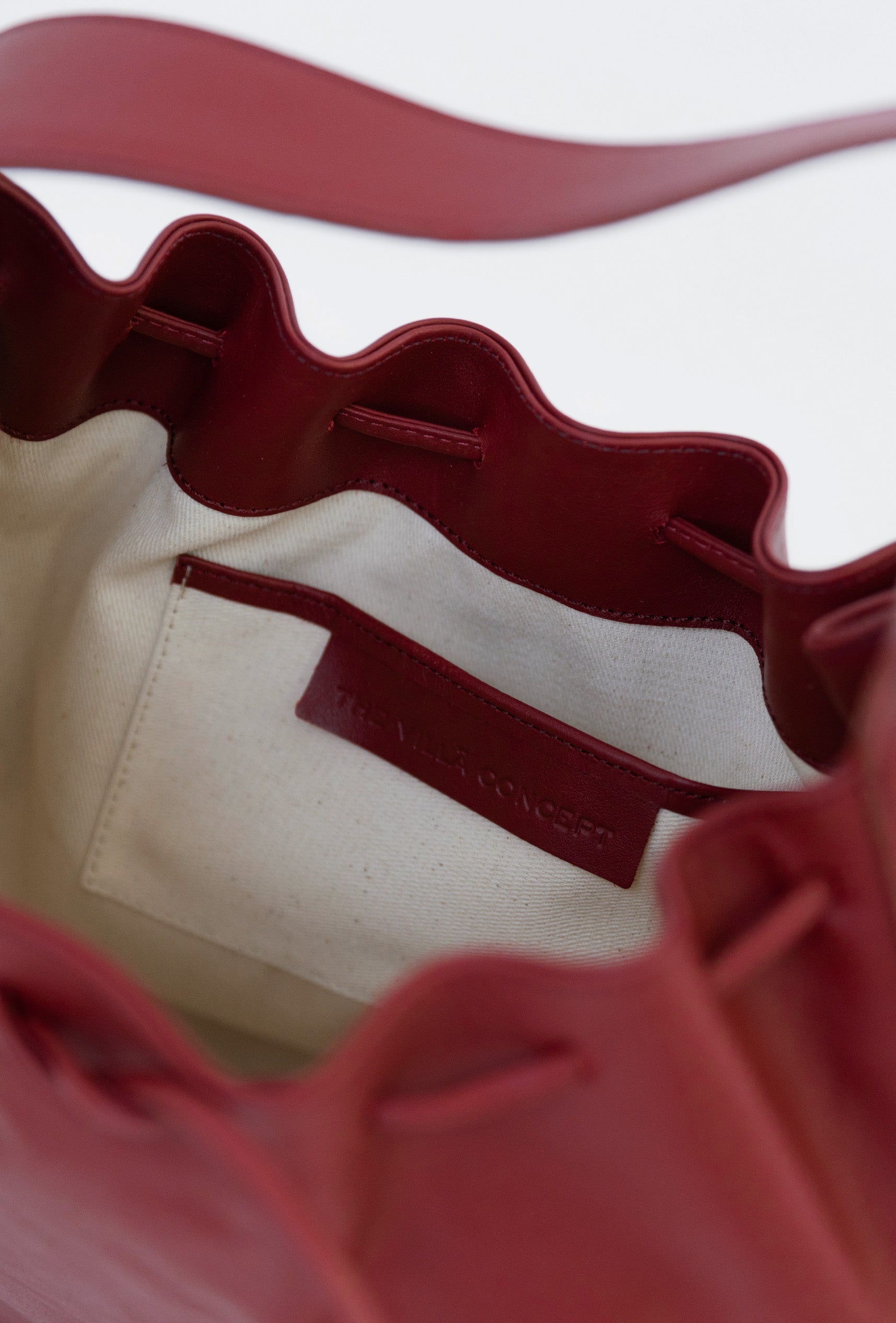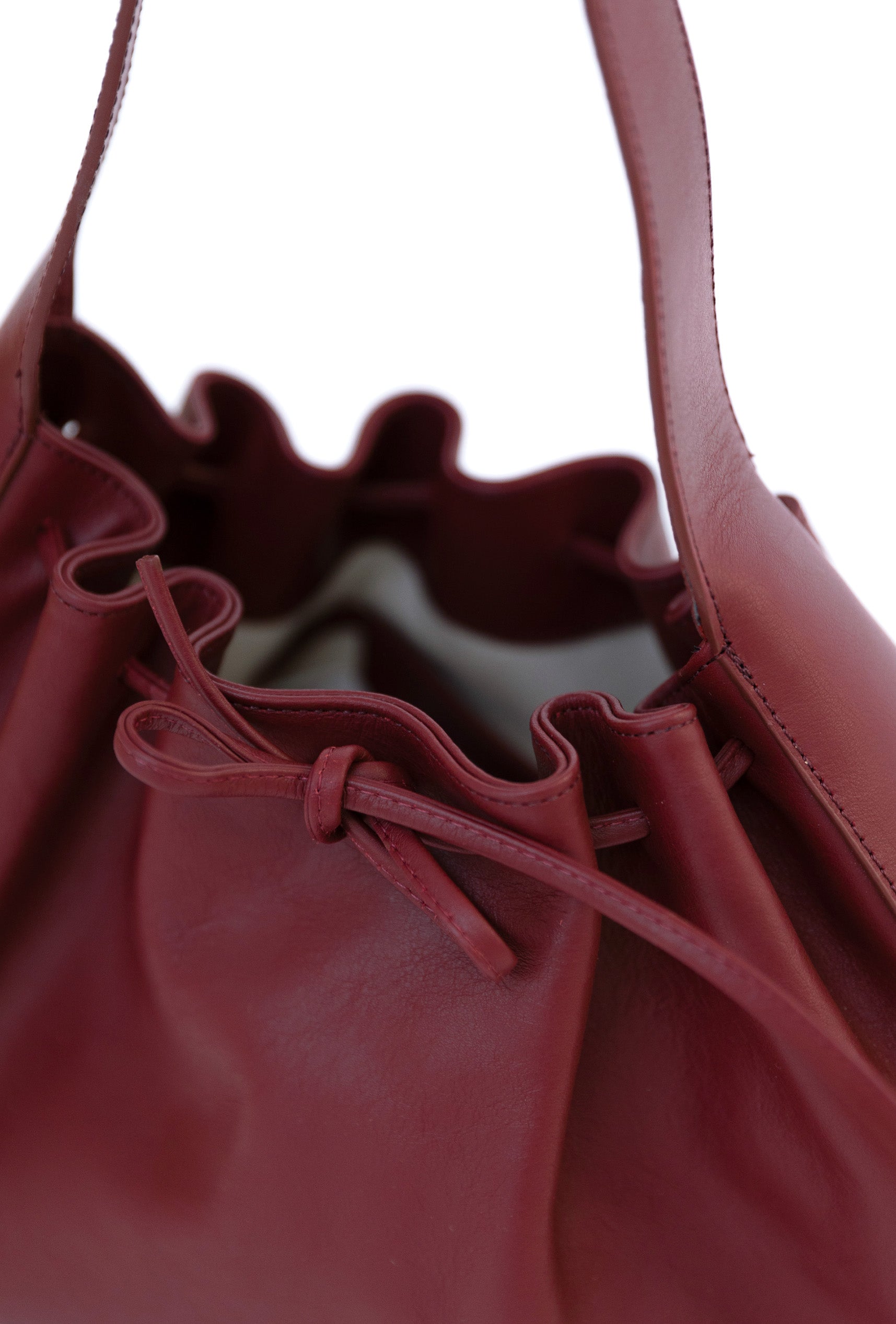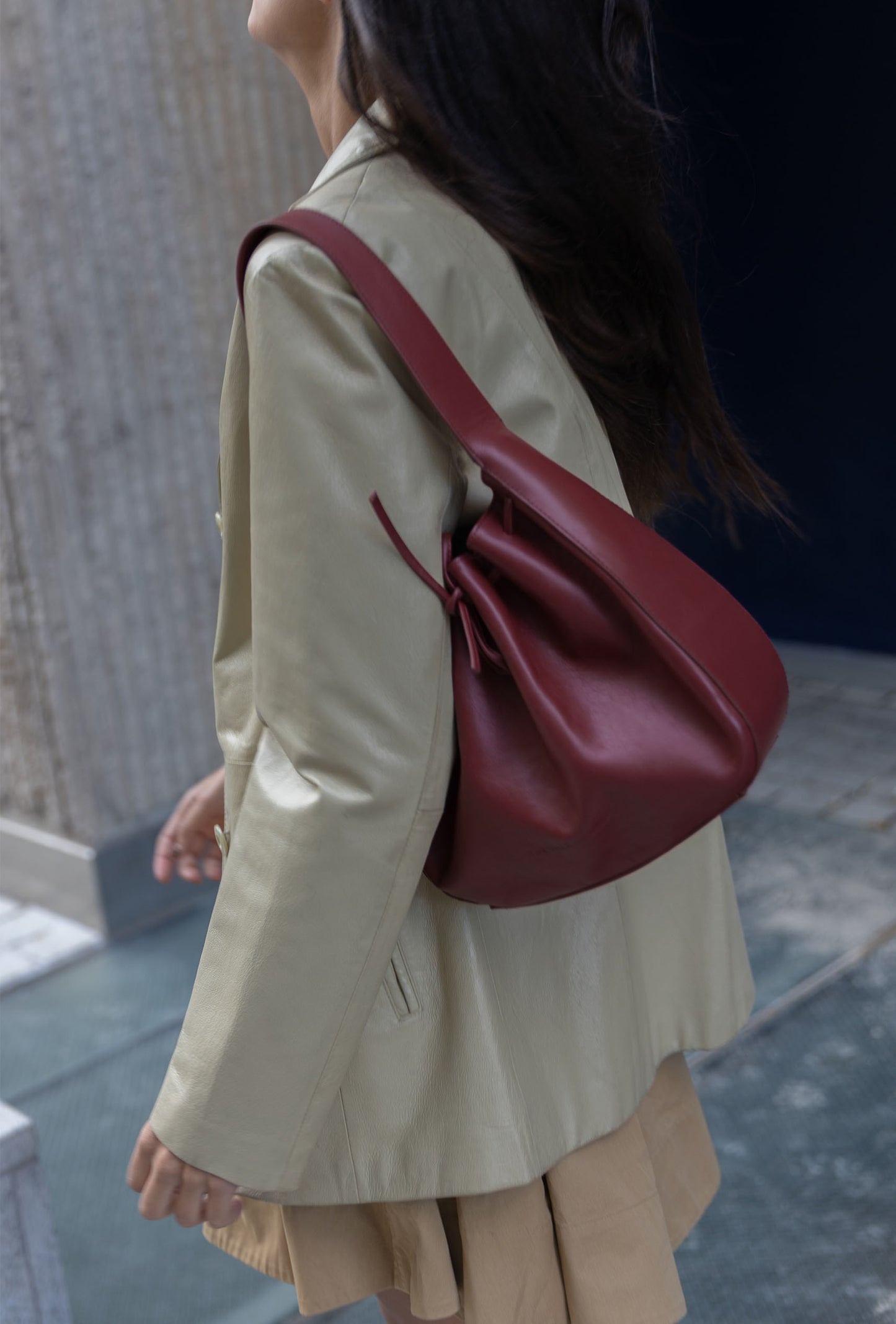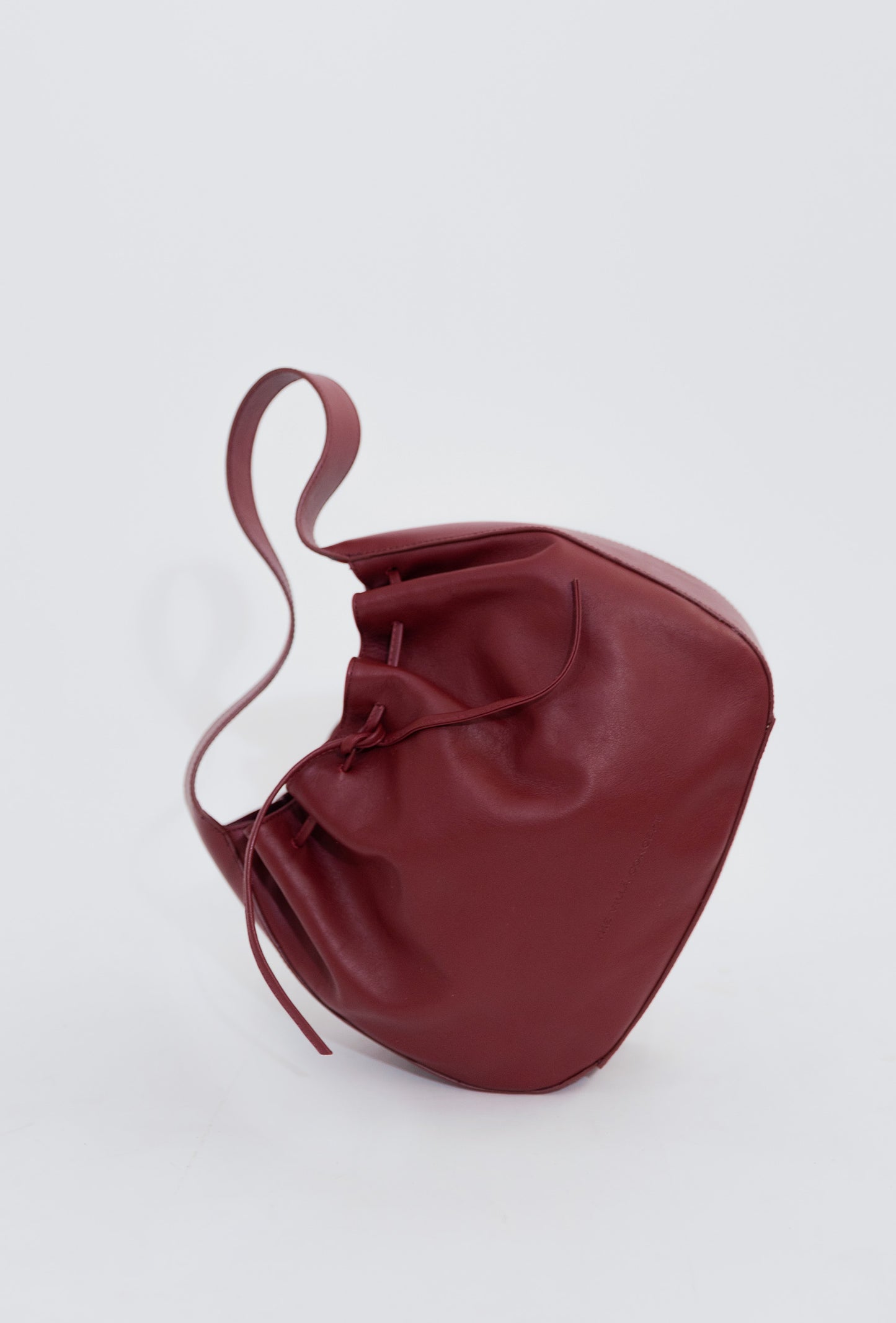 El Sac Leather bag: Wine tiene una forma abullonada y se cierra de manera segura con una cuerda regulable. Este bolso es perfecto para llevarlo en cualquier ocasión.