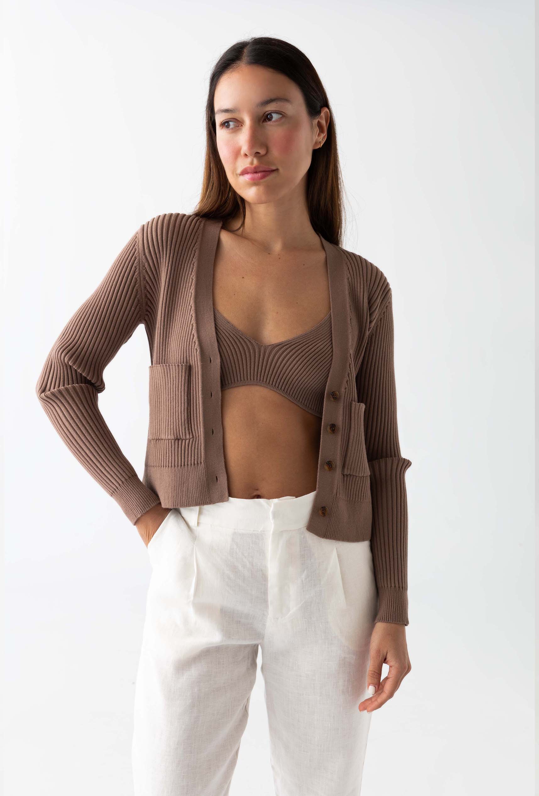 L'objectif de The Villã Concept est de réduire l'impact environnemental et de soutenir les pratiques qui favorisent une amélioration de l'environnement, c'est pourquoi le Knit Set est fabriqué avec de la viscose durable.