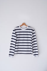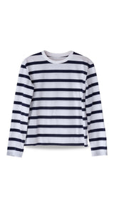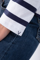 T-shirt rayé bleu marine.