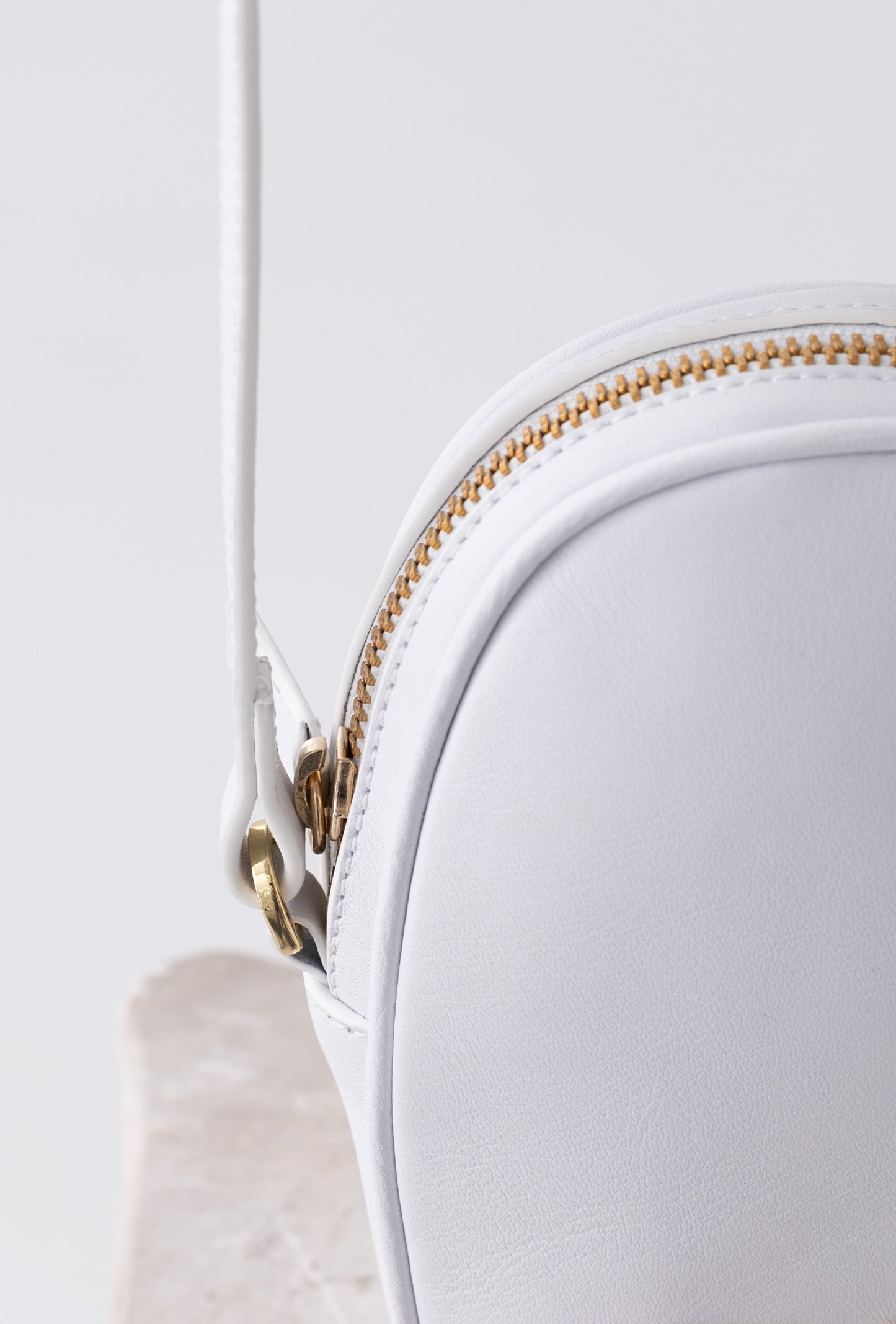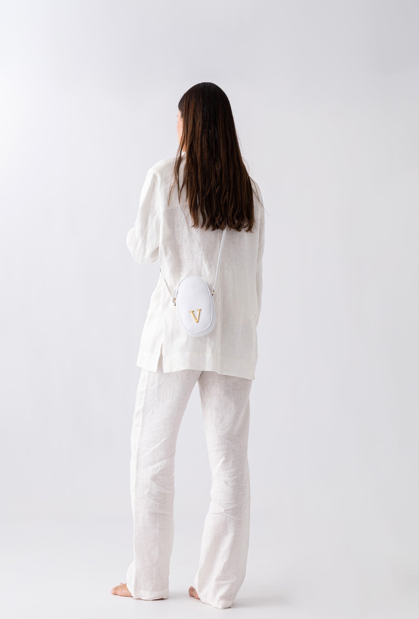 Le sac à œufs a été fabriqué avec 100% cuir de vachette D'une texture douce de façon artisanale, ses détails en métal doré ont été polis à la main et sa doublure intérieure est 100% coton avec une poche intérieure pour plus de confort. Il a une bandoulière réglable avec différentes mesures donnant lieu à la multipositions du sac, il peut se porter aussi bien en bandoulière qu'en bandoulière. Le logo caractéristique de la marque est gravé au feu au dos. Le sac est disponible en quatre couleurs différentes, blanc, noir, rose et orange.