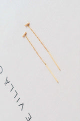Su diseño es alargado con acabado en brillo, ideal para vestir o llevar en el día a día. Cuenta con cadena de oro fina de 18 k y barra también de oro 18 k de 2,5 cm. Se venden en par.