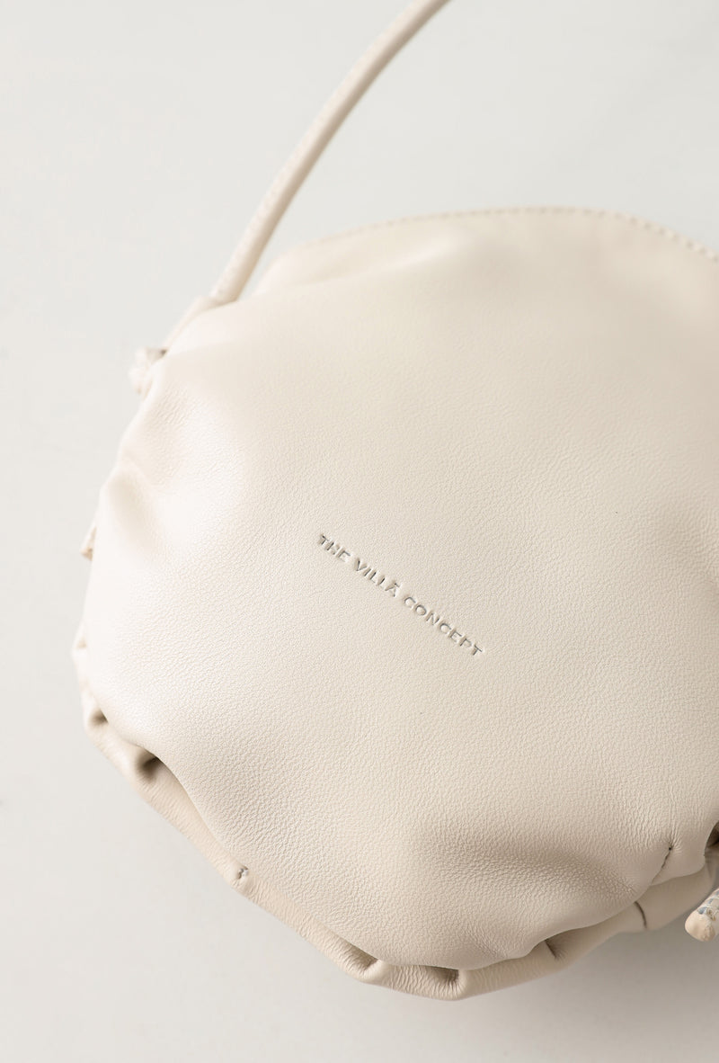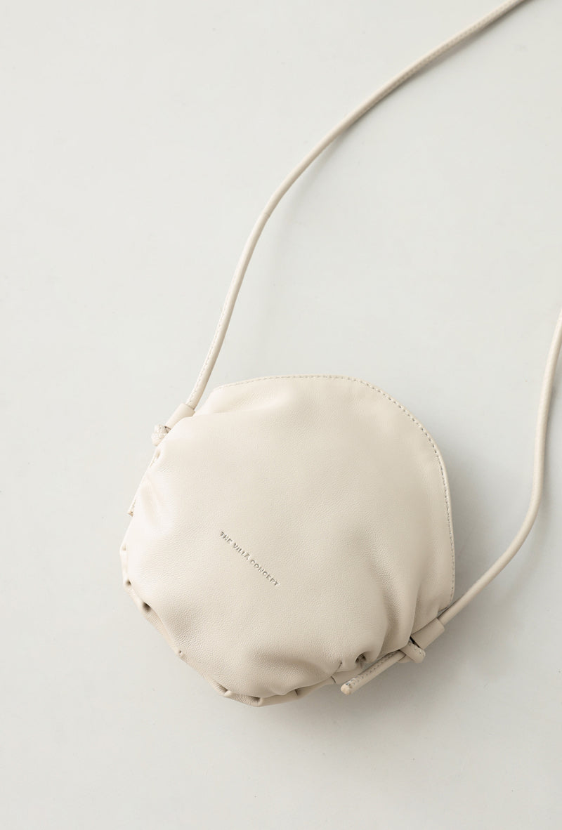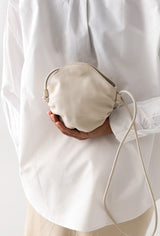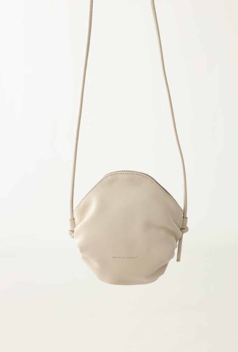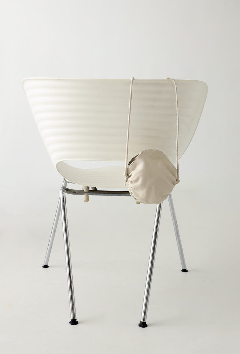 Shell Bag ha sido elaborado con 100% piel vacuna de textura suave de manera artesanal, y su forro interior es 100% algodón. Posee pliegues en la base del bolso que simula las formas orgánicas que dibujan la concha. Se puede llevar tanto cruzado como de hombro. En la parte delantera está grabado a fuego el característico logo de la marca.