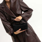 Cierre mediante imantado oculto y asa de hombro. En el interior lleva el significativo logo de la marca.
