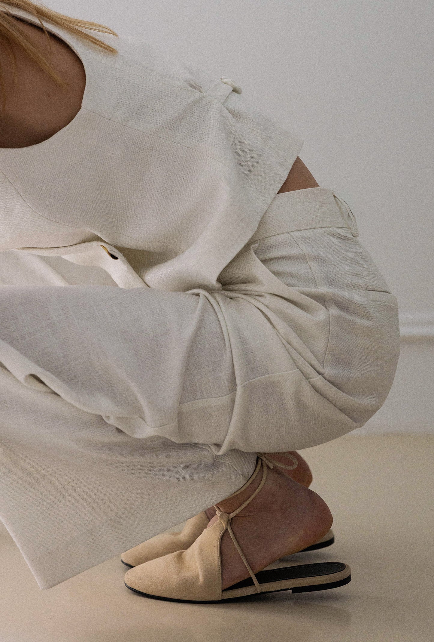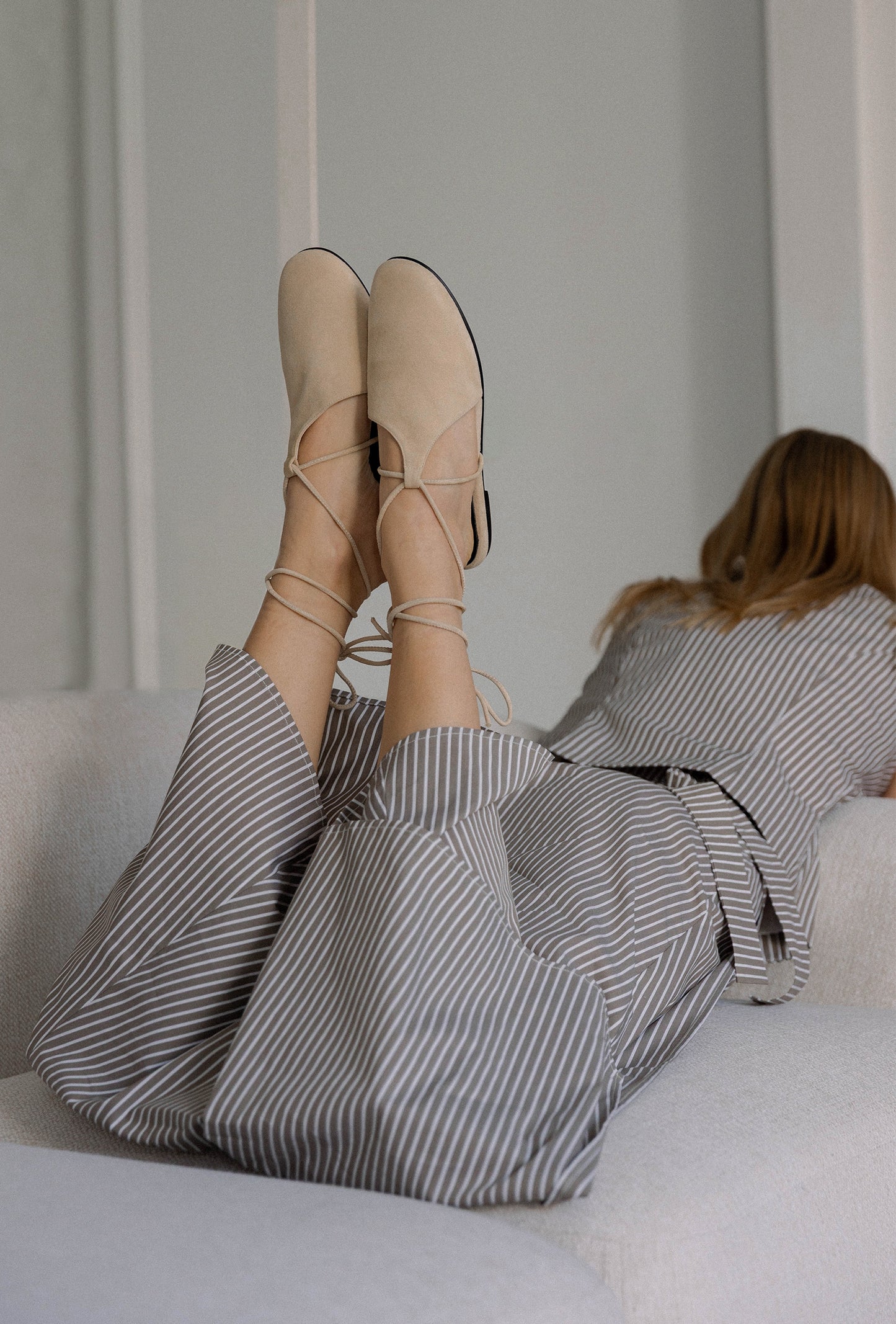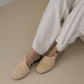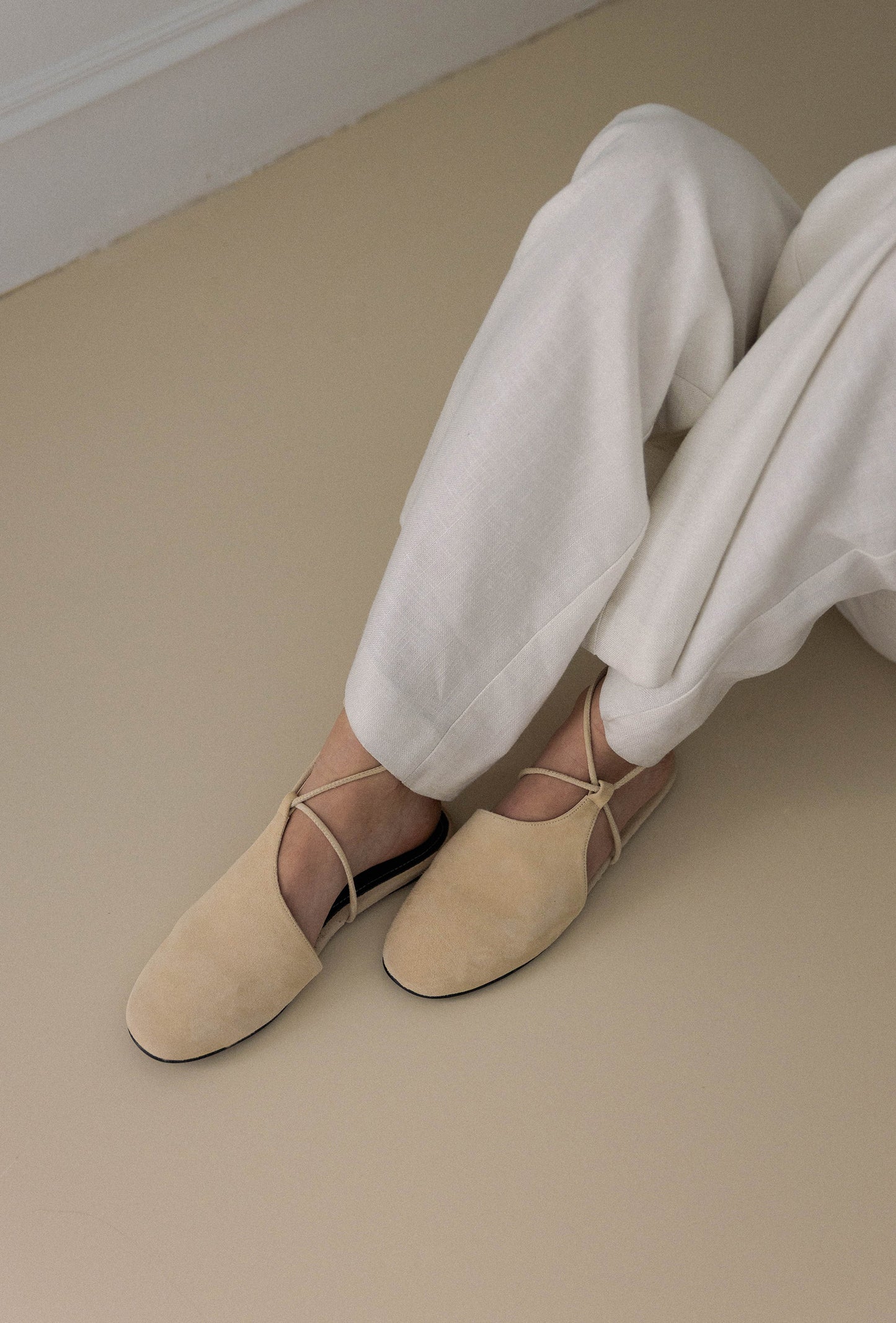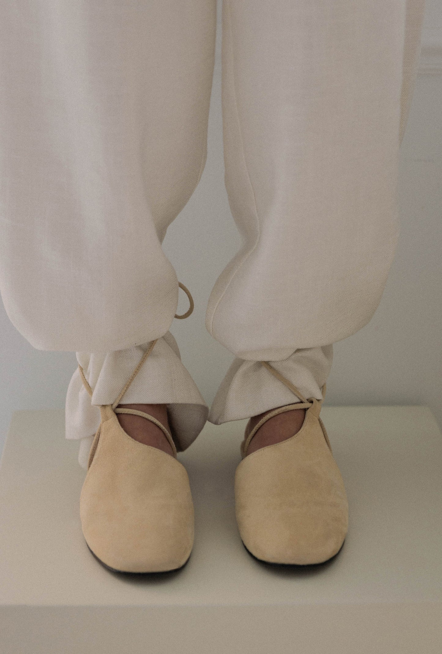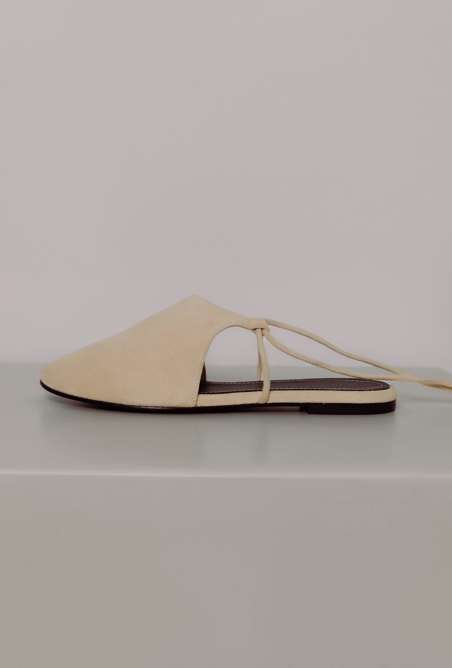 Nuestros Suede Mules en color camel claro combinan atemporalidad con confort artesanal. Están confeccionados en suave ante y se ajustan con cordones finos alrededor del tobillo, aportando sujeción sin renunciar a la ligereza.