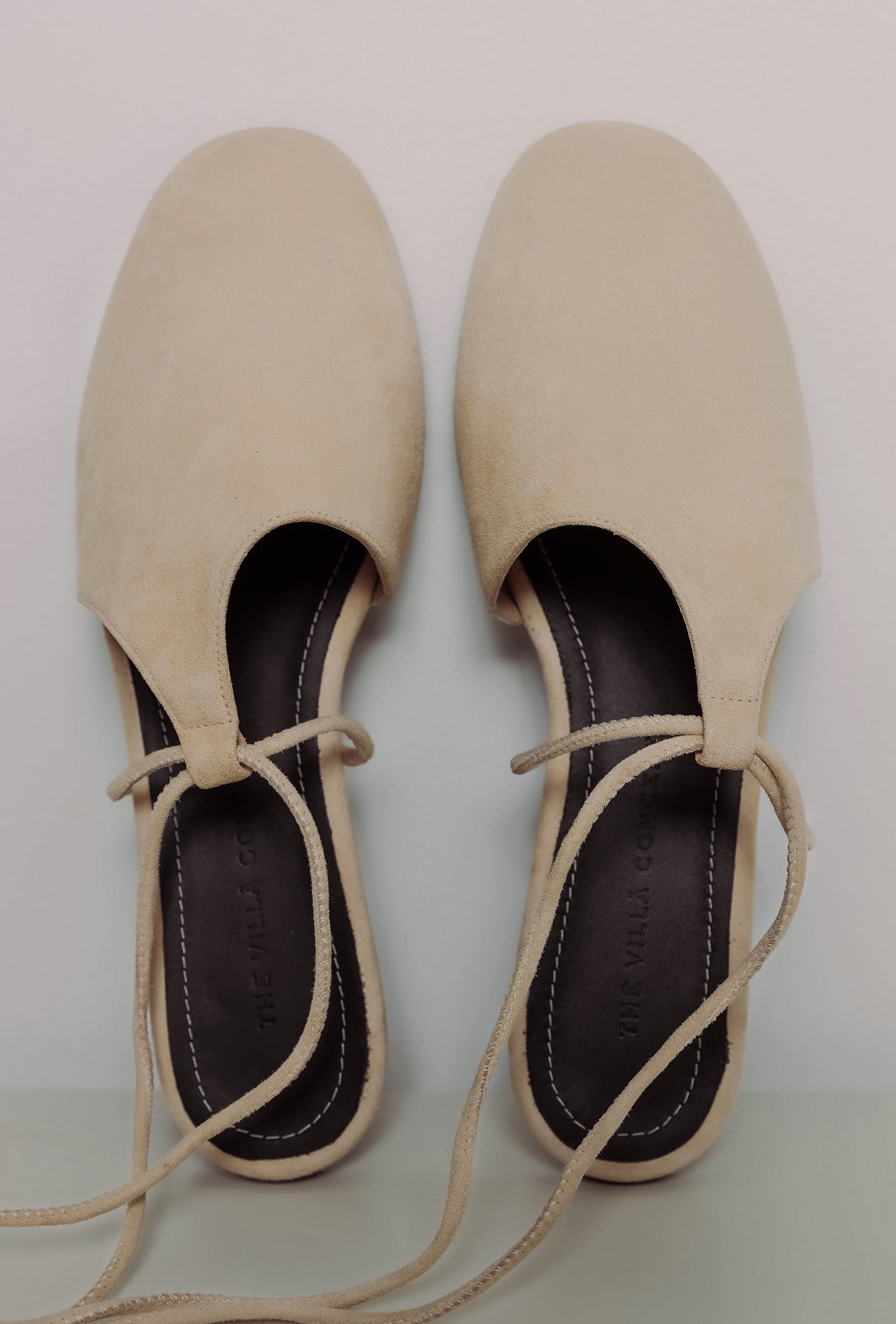 La plantilla, en piel negra, incorpora el logo de The Villã Concept marcado a fuego.