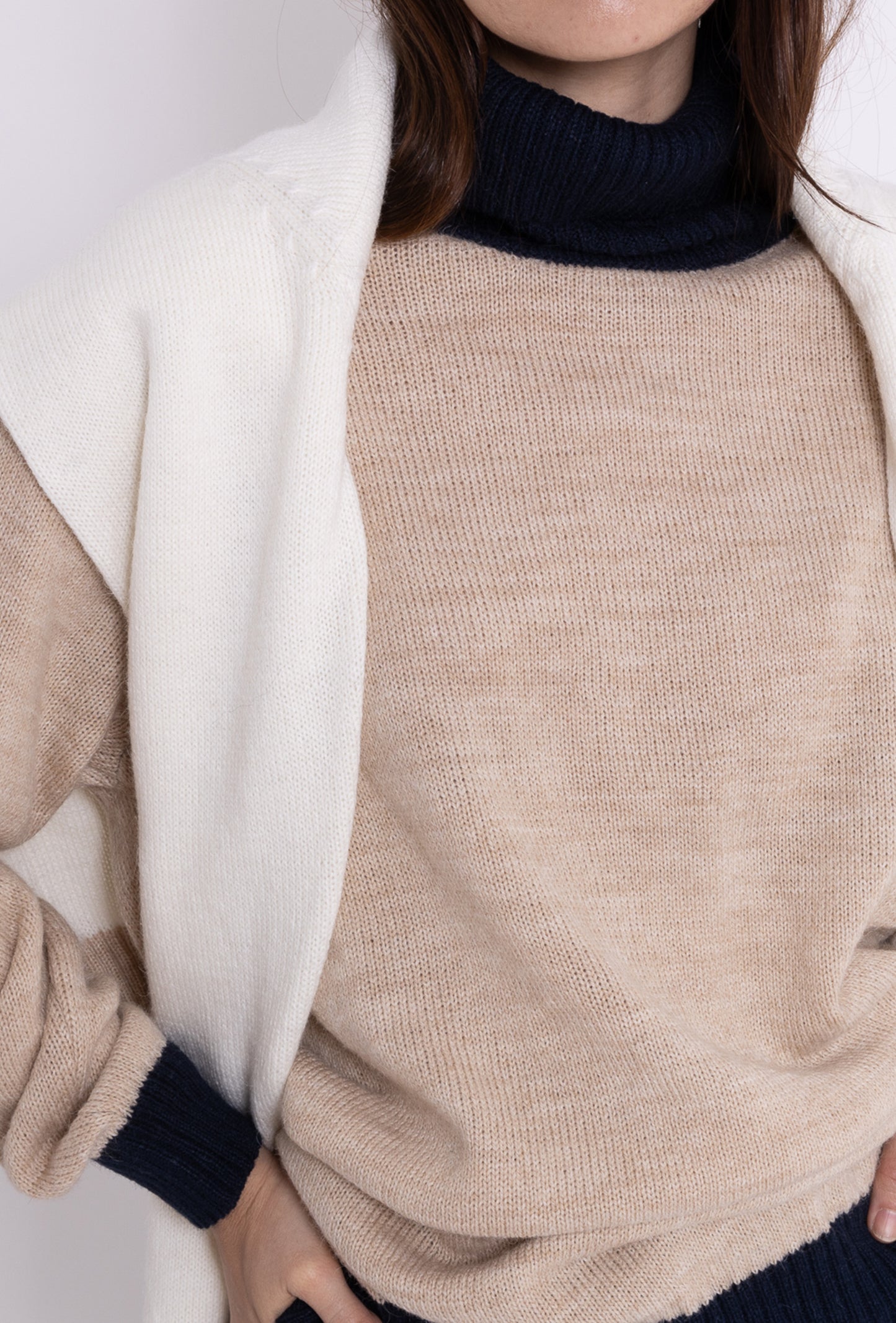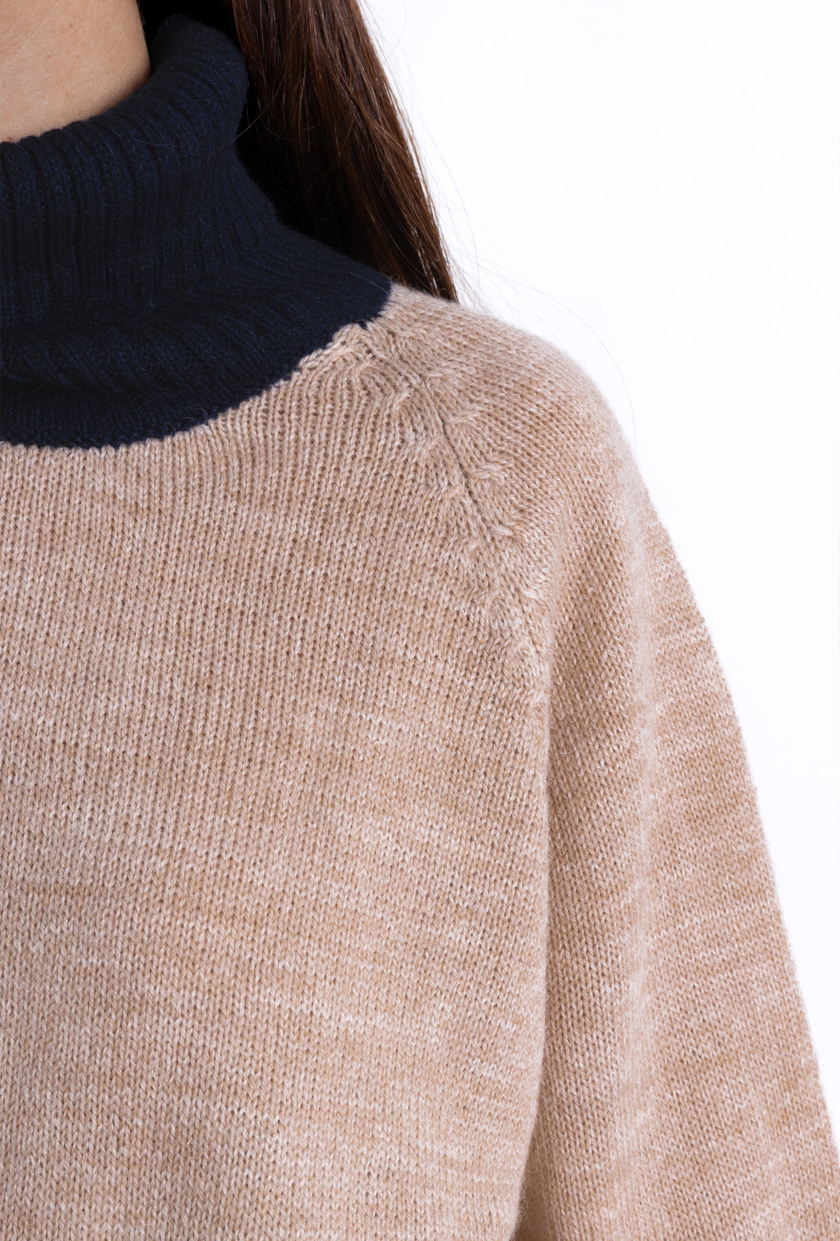 Turtle Neck Sweater: Camel & navy